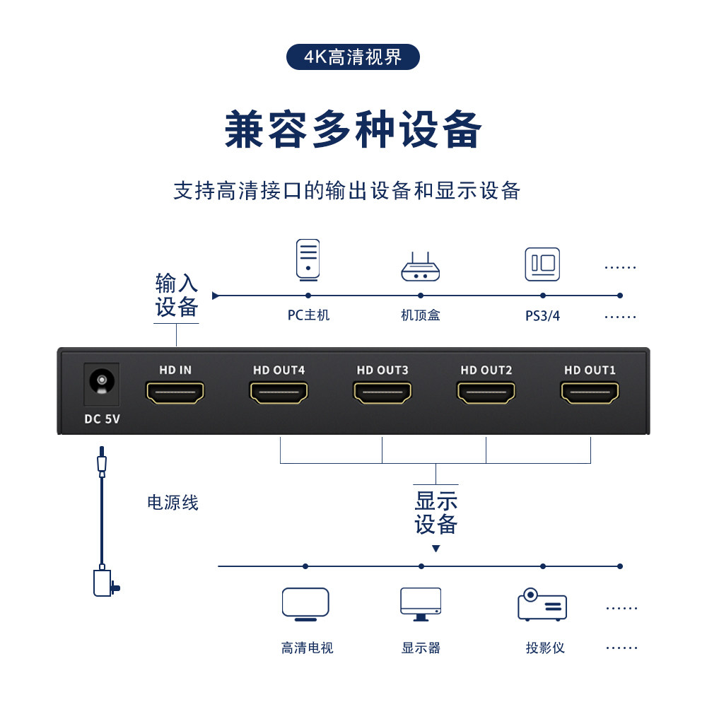 Co-Lie 4Khdmi4 mouth dispenser 1 in 4 out supports HDCP 4K30Hz splicing screen selling field KTV special