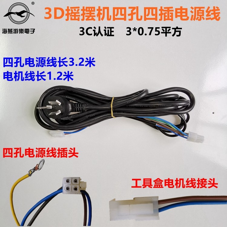 Swing machine controller 4-hole power cord 2 3 m 3D swing machine lengthened plug power cord 3 2 m double hole straight insert iron shell power supply power cord 2 3 m four-hole power supply plate power cord 2 3 m