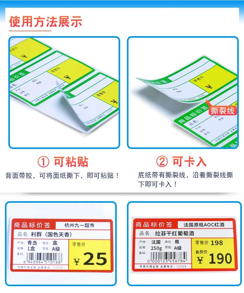 Factory price thermal price tag thermal barcode paper self-adhesive printing paper 70*38 supermarket retail pass Ruyi available