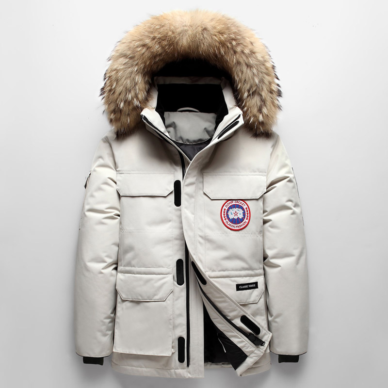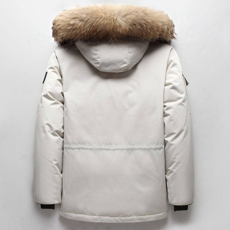 Anti-season down clothes Men's short section Thickened Winter New Big Woolen Collar Couples Tooling Tide Goose Warm Ski Suit Jacket