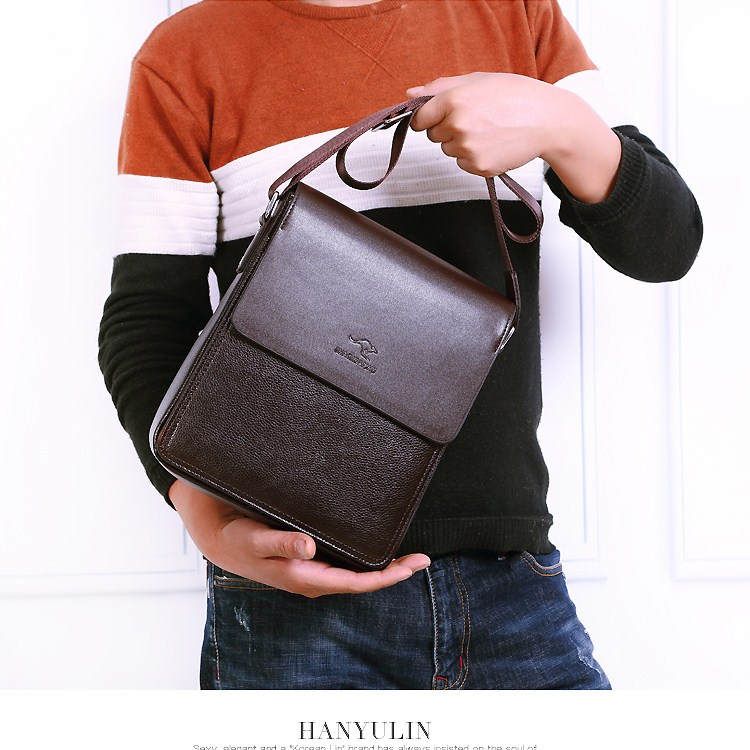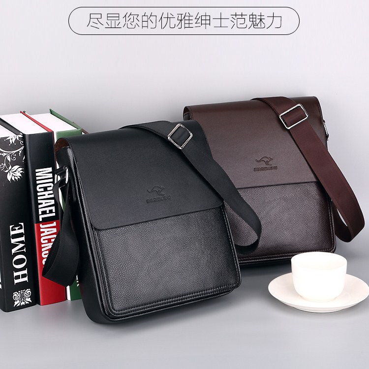 Shaqi Kangaroo Men's Shoulder Bag Casual Business Messenger Bag Leather Brief Backpack Fashion Versatile Small Pouch
