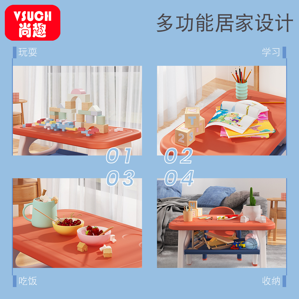 Orange Red Bright Yellow Pink Lake Blue Lemon Yellow Lotus Root Color Sky Blue Orange Color Dinosaur Style Orange (One Table One Chair Solid Non-slip) New Orange (One Table With Solid Non-slip) Small Dinosaur Subsection Yellow (One Table One Table
