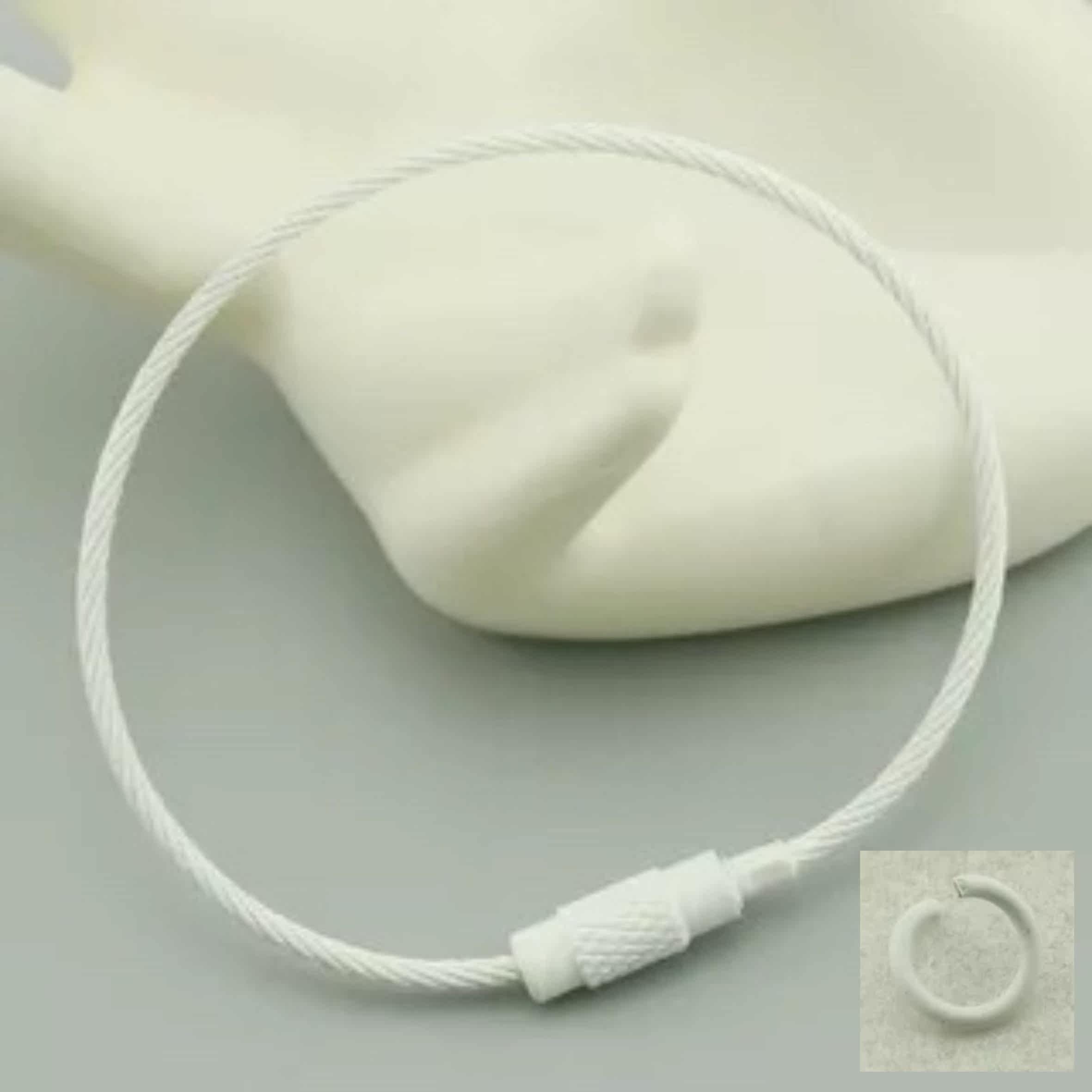 White keychain with an outer diameter of 5cm and a split ring Black keychain with an outer diameter of 5cm and a split ring