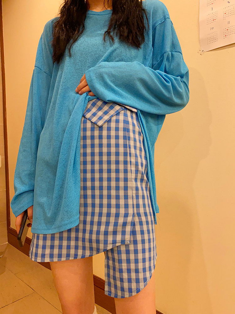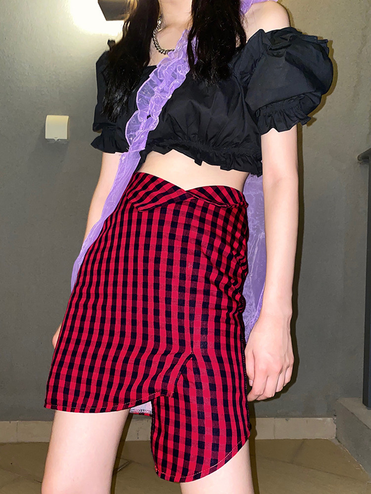 Flower field window irregular plaid skirt Women's summer a-line skirt Korean version high waist bag hip thin short skirt Hong Kong flavor