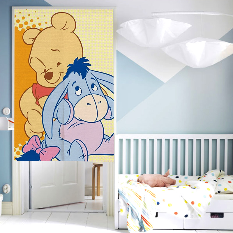 Winnie the Pooh children's room curtain partition bedroom home summer Velcro self-adhesive dressing room cabinet cover cloth