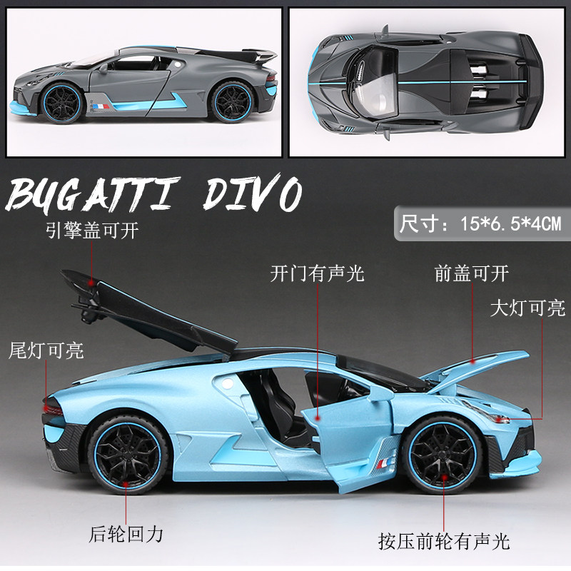 Bugatti super sports alloy car model 1:32 metal simulation car model sound and light pull back to open the door boy toy car