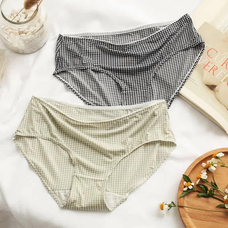 Plaid Briefs Female Ice Silk Super Slim Silk Slip Student High School Girl Girl Han Version Pure Cotton Crotch Junior Middle School Triangle