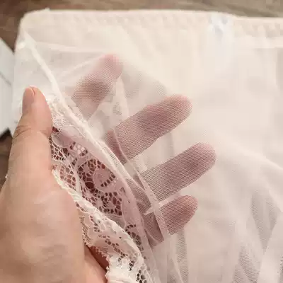 White four-legged underwear Women's Flat corner cotton crotch pants lace ultra-thin non-trace anti-light interior pants safety pants
