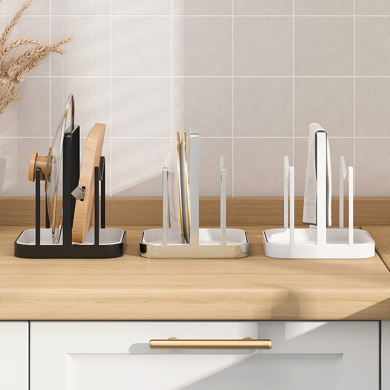 Countertop sitting pot cover rack vertical chopping board storage rack free punching multi-functional household kitchen shelf artifact
