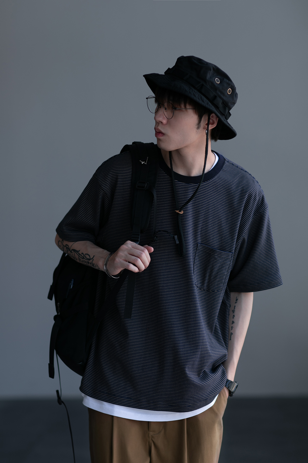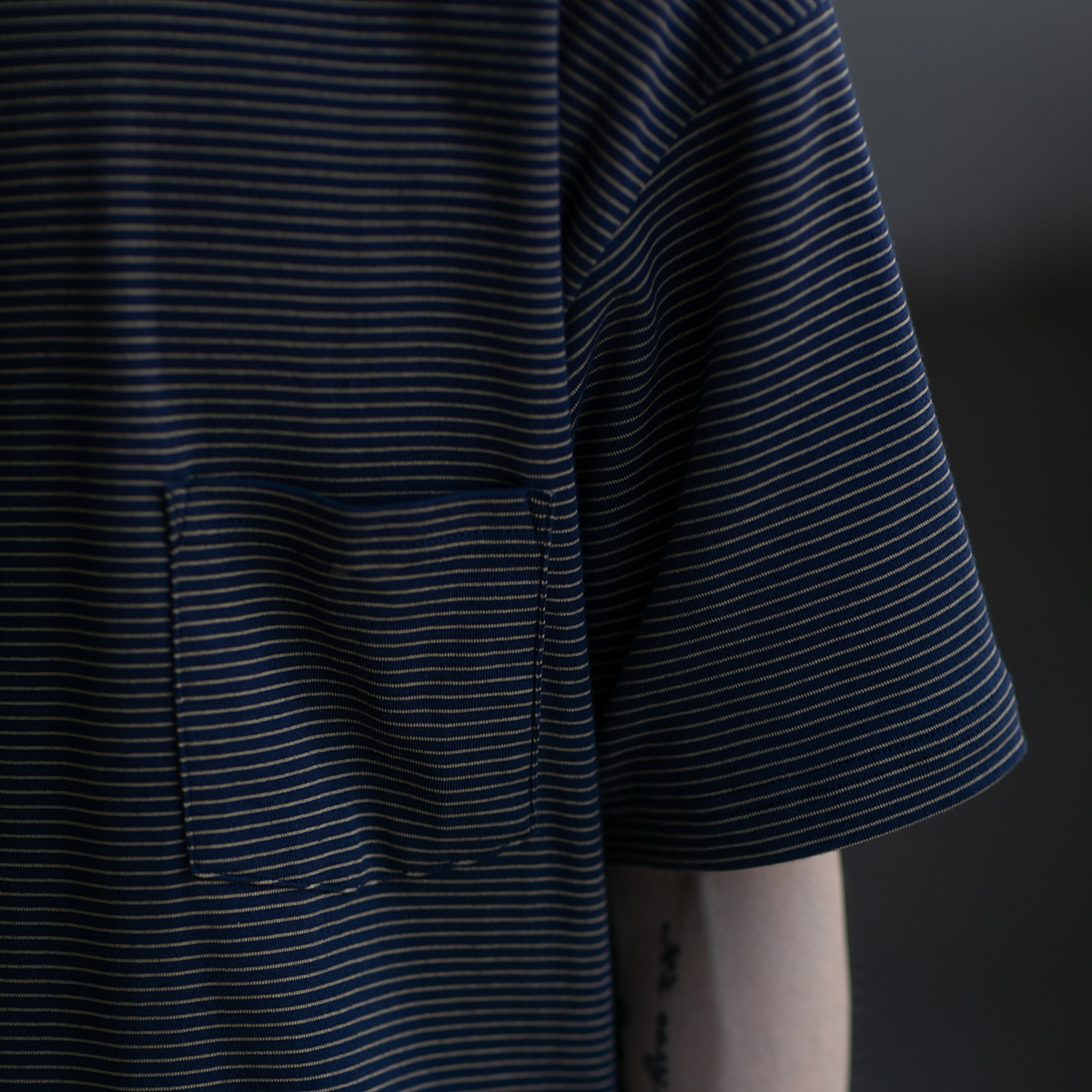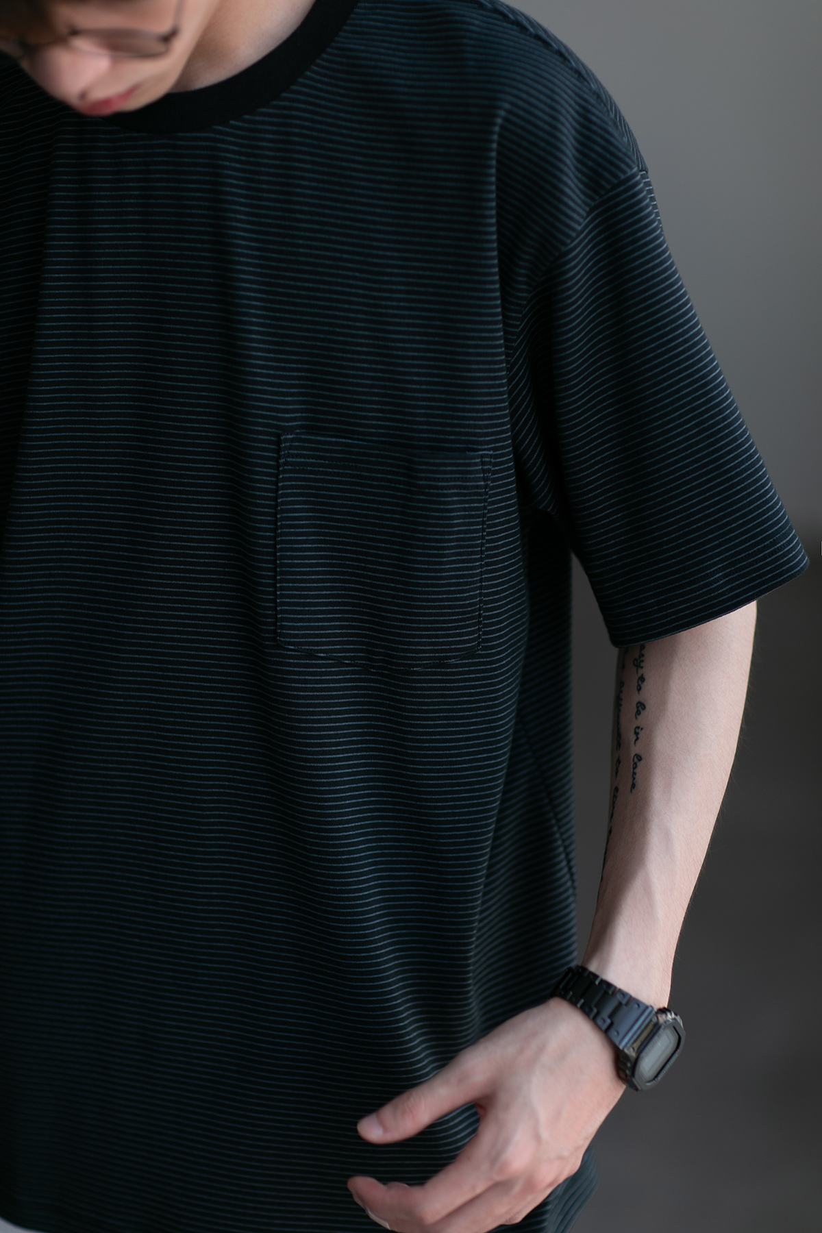 Small stripes HUMANIMAL 20S ] Japan imports GIZA Egyptian cotton long-duvet cotton pocket base short sleeve T-shirts