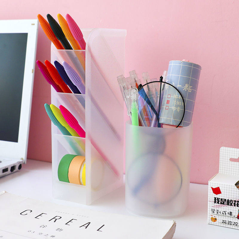 Simple oblique plug-in transparent frosted desktop pen holder office desk storage box pen bucket student stationery