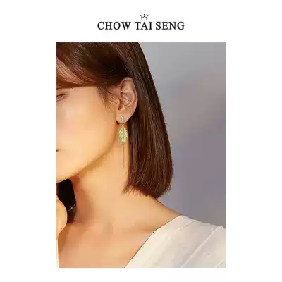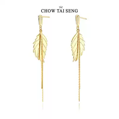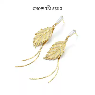 Zhou Dai-Sheng Golden Leaf tassel ear refining long earrings female niche design earrings leaves sterling silver earrings ear needles