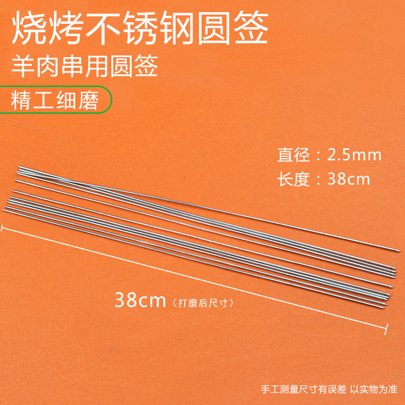 BBQ stick 38cm stainless steel barbecue stick barbecue iron stick mutton skewer stick 33cm round stick barbecue utensils
