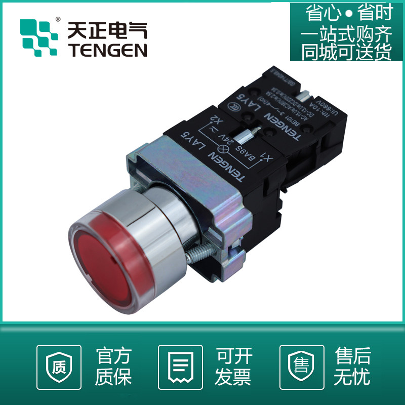 Tianzheng illuminated button LAY5-BW3361 BW3462 24V 220V red and green self-reset flat head LED light