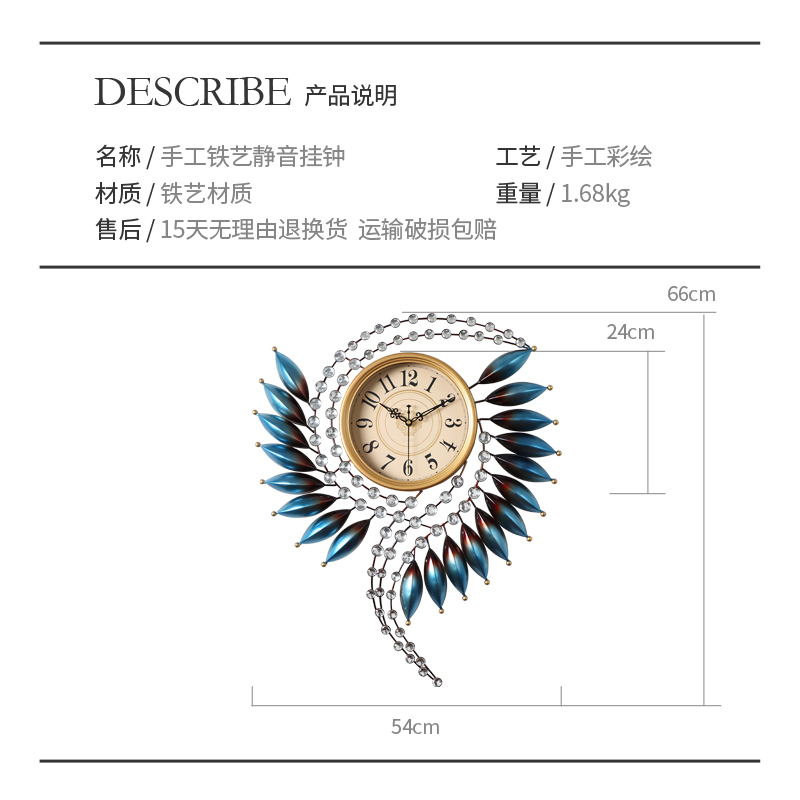 Maple Love Light Luxury Watch Wall Clock TV Background Wall Art Peacock Hanging Clock Living Room Home Fine Work Atmosphere