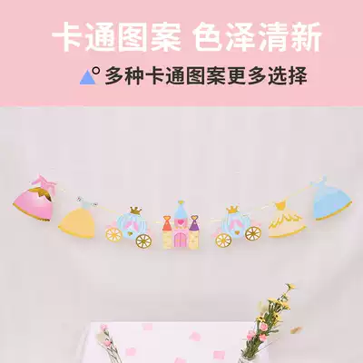 Travel in space to pull the flag spaceship astronaut birthday banner Princess castle to pull the flag rocket astronaut birthday banner Golden bronzing triangle to pull the flag birthday colorful banner Hand-in-hand banner Little fairy horizontal