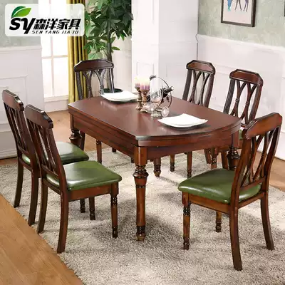 1 38 meters American country small apartment can be stretched and retractable dual-purpose platform full solid wood dining table dining chair combination