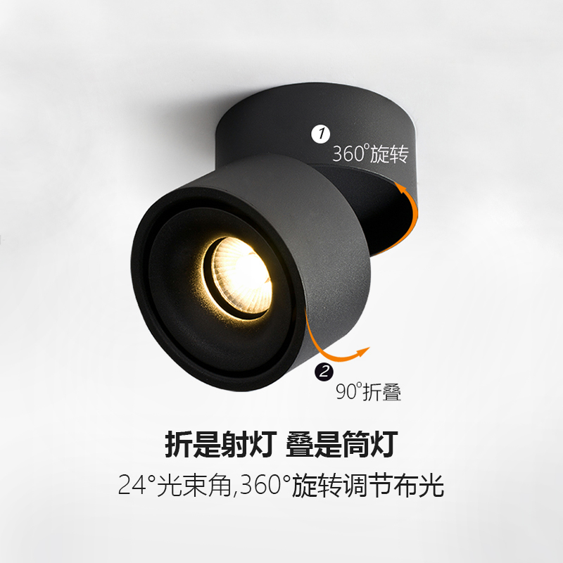 Pinlong cob surface folding spot light Living room bedroom aisle entrance Clothing store ceiling adjustable angle LED downlight
