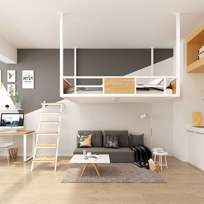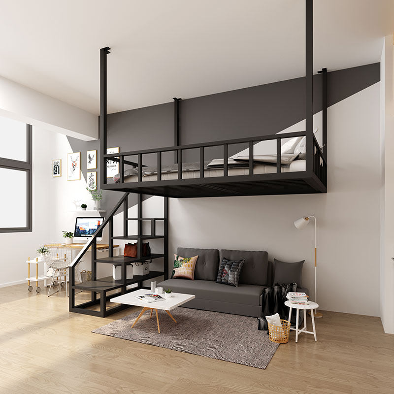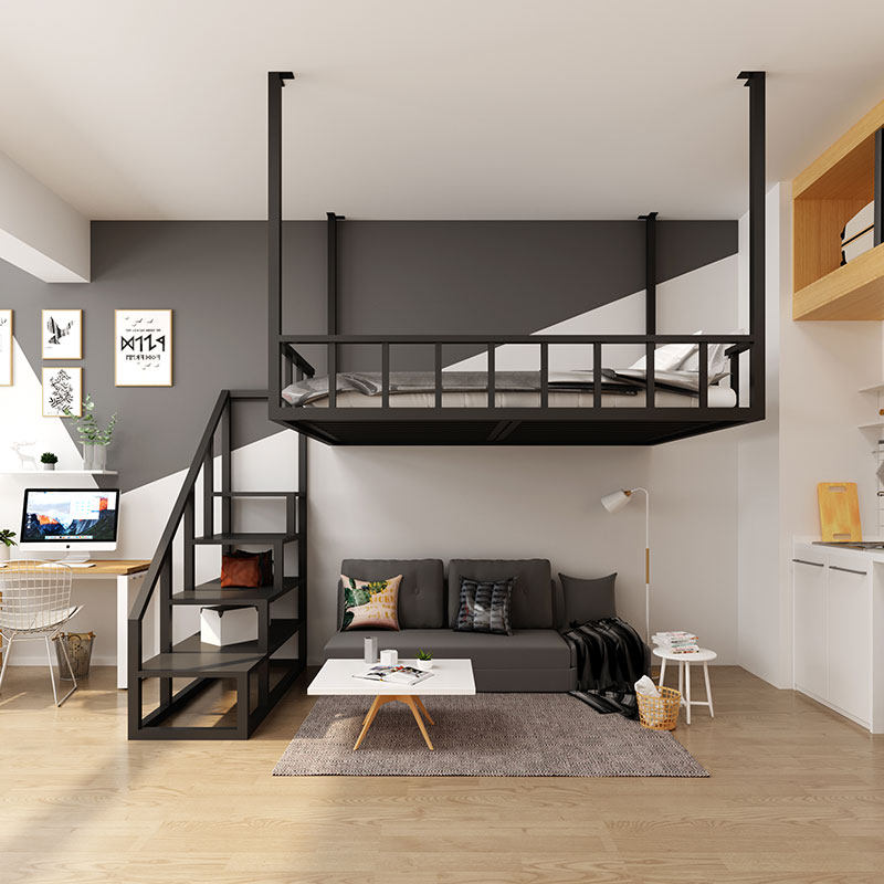 Modern small family type loft bed suspended wall-mounted bed iron art High shelf bed Double beds Dormitory Apartment Creative Hammock-Taobao