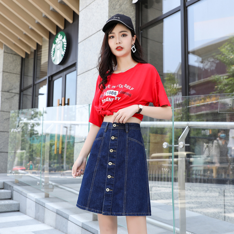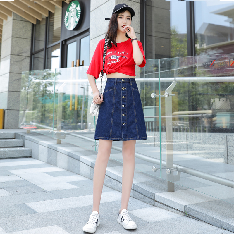 Denim Skirt Woman 2022 Spring Summer New Korean version High waist 100 hitch loose A word half body dress with long version of one step skirt