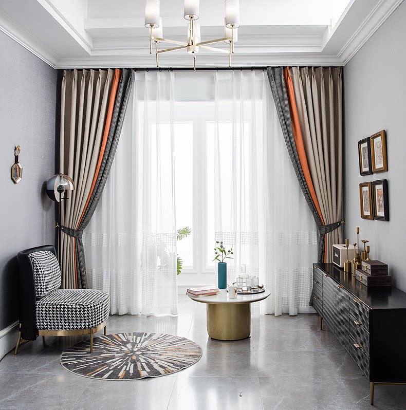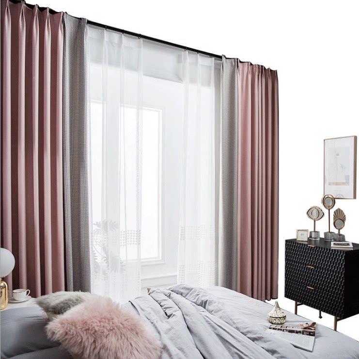 Nordic Pink Kilobird Lattice Splicing Living-room Bedroom Floating Window Finished Product Custom Shading Sunscreen Curtain fabric set to do