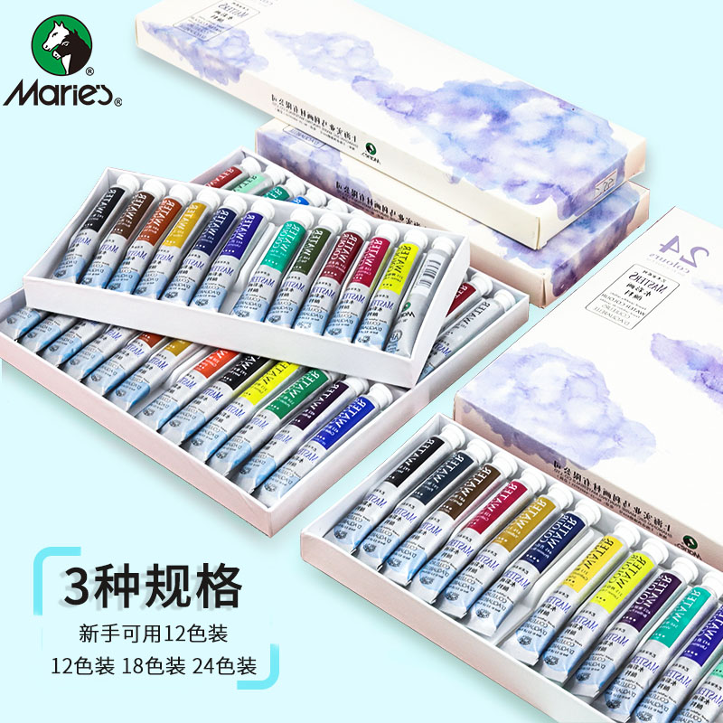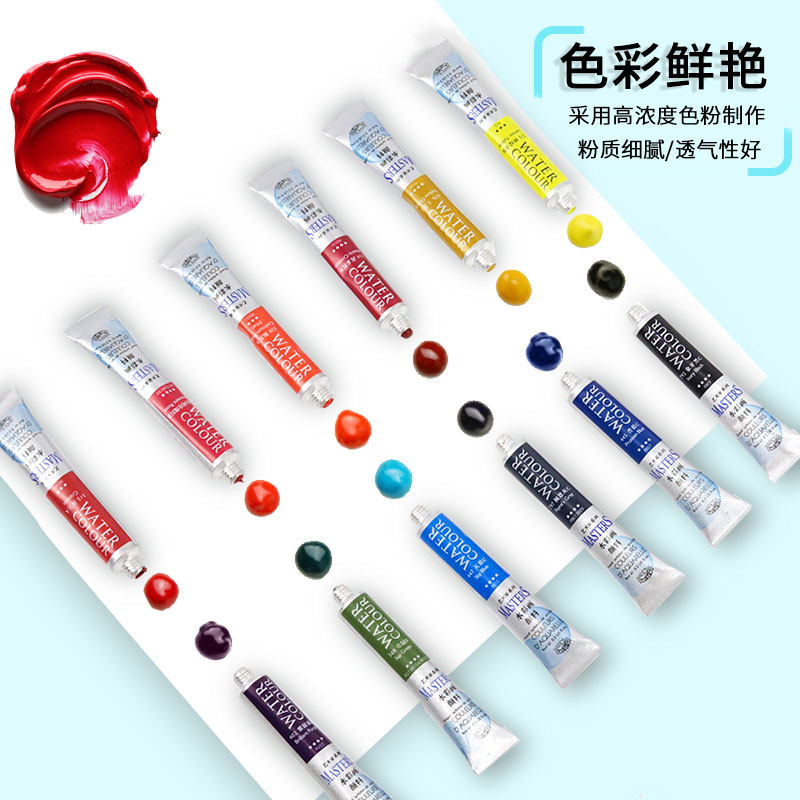 Malink Watercolor Painting Paint Professional Suit Beginners Hand-painted Tubular 12 18 18 Color 24 color Children students with horsepower water powder boxed single portable painting tool full set of color tuning disc