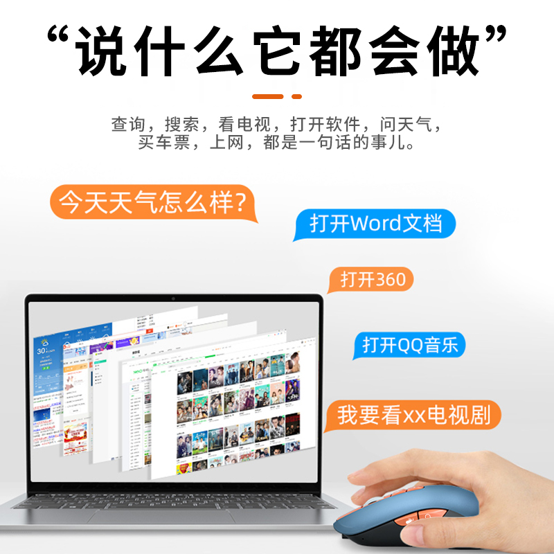 AI artificial intelligence voice sliding mouse wireless rechargeable voice-controlled speaking typing laptop input translation suitable for Xiaomi Lenovo Dell HP mouse-mouse identification non-muted
