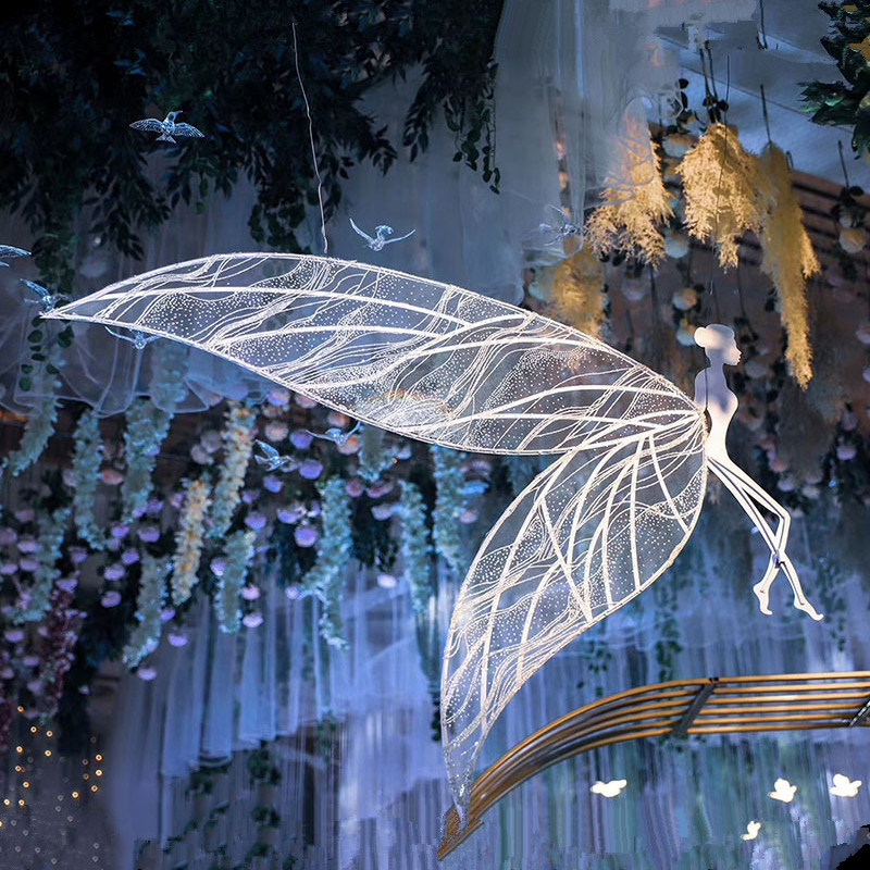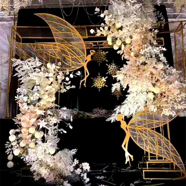 Golden elves 1 pair of white elves 1 pair of gold containing white desire to put gold with gold petals background gold feather circuit white feather circuit leads large petals background white luminous fine