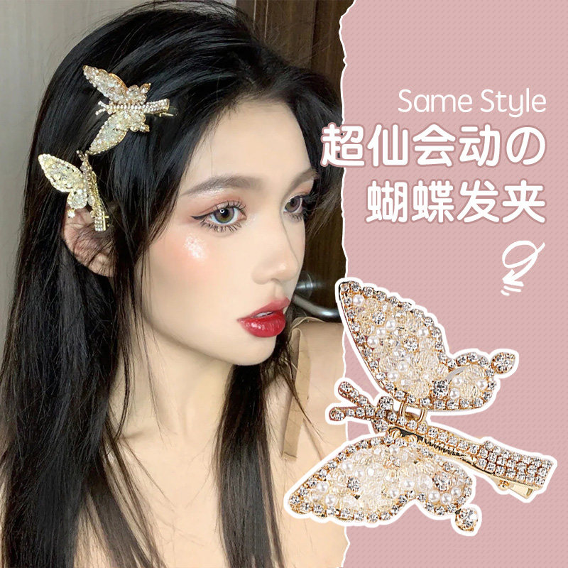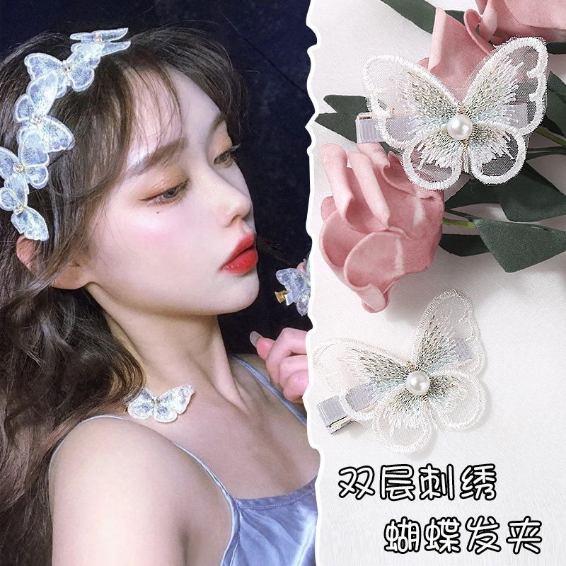 Double embroidered butterfly hairpin subnet red INS son department fairy super fairy headdress Japanese girl sweet hair clip