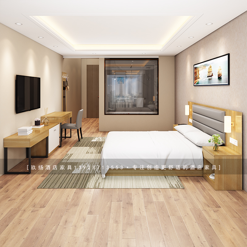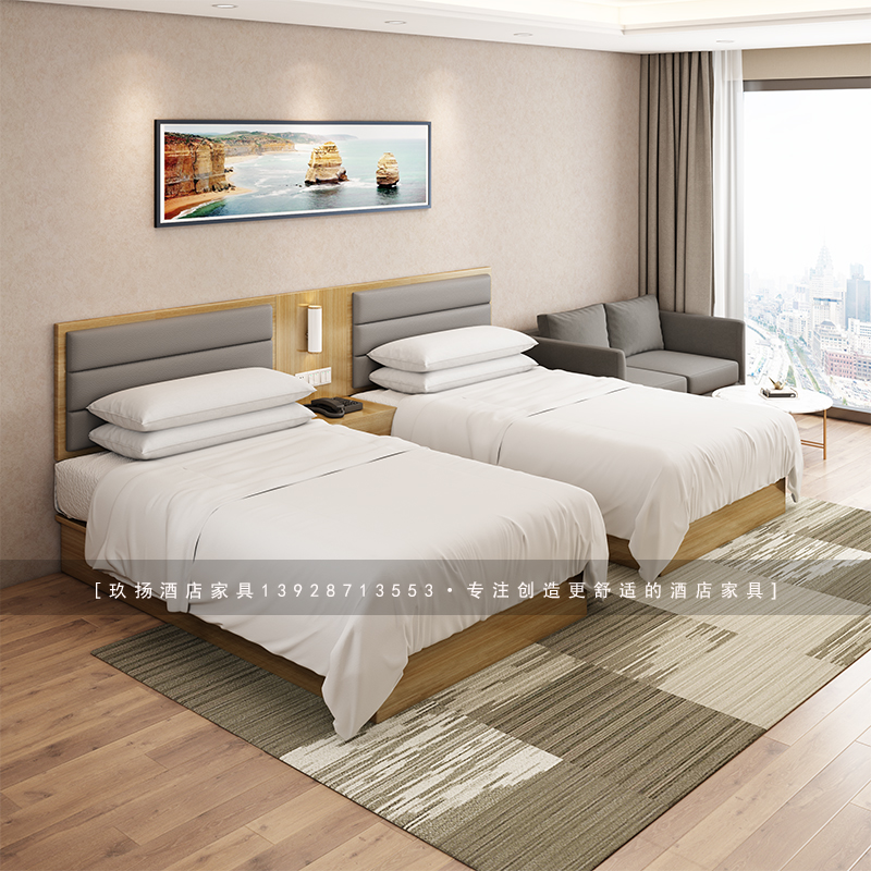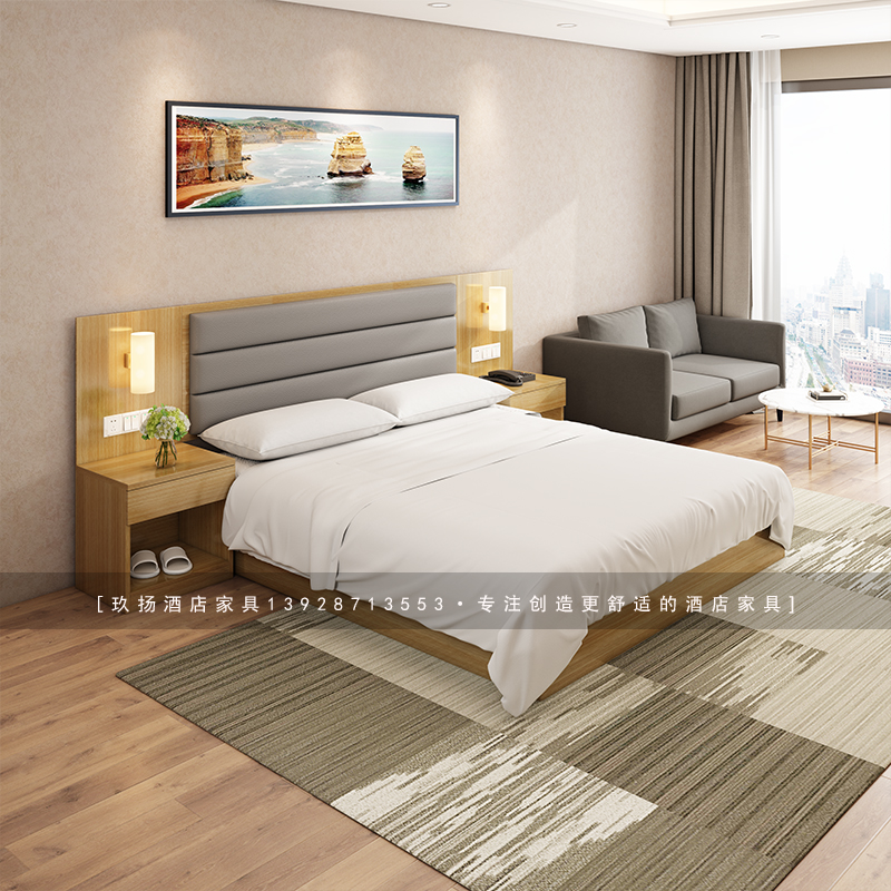 Hotel hotel furniture double single bed frame standard room full set apartment express homestay guest room custom bed Simmons
