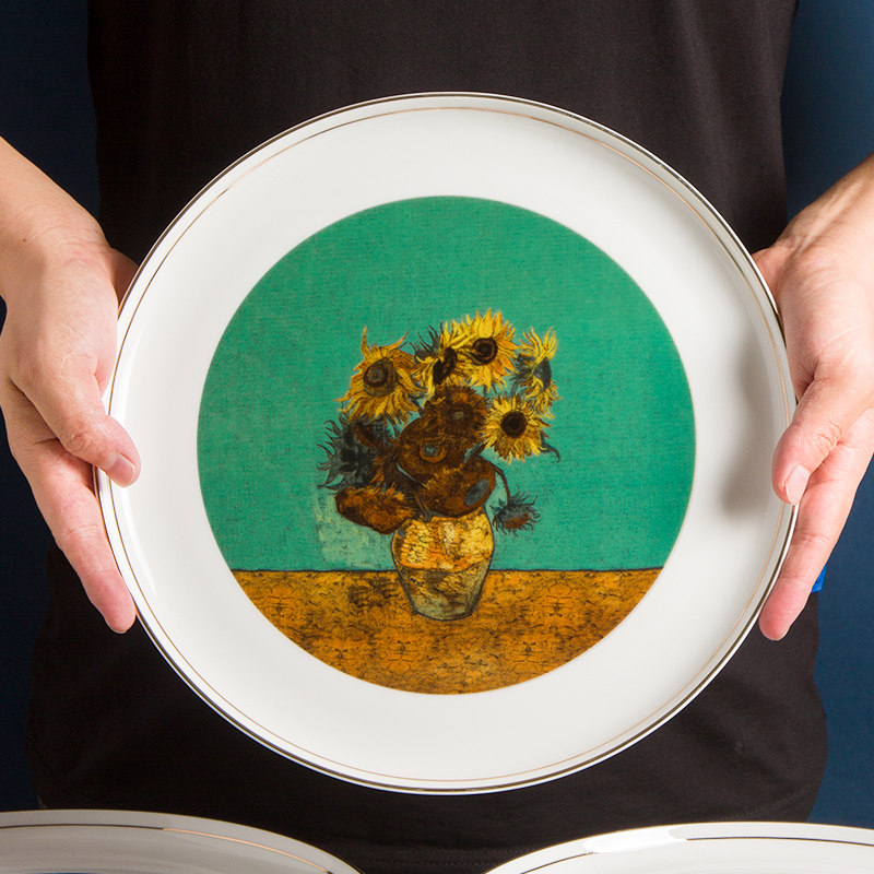Van Gogh almond blossom tree containing disc (diameter 28cm) Van Gogh Star Night containing disc (diameter 28cm) Van Gogh sunflower containing disc (diameter 28cm) Van Gogh Star empty tea containing disc (straight