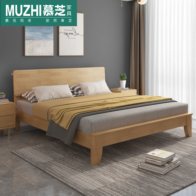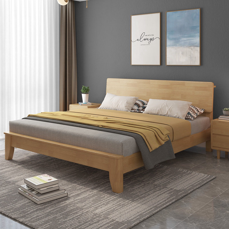 Modern simple solid wood bed double bed 1 8 meters 1 5 meters household small apartment walnut color 1 2 meters single bed