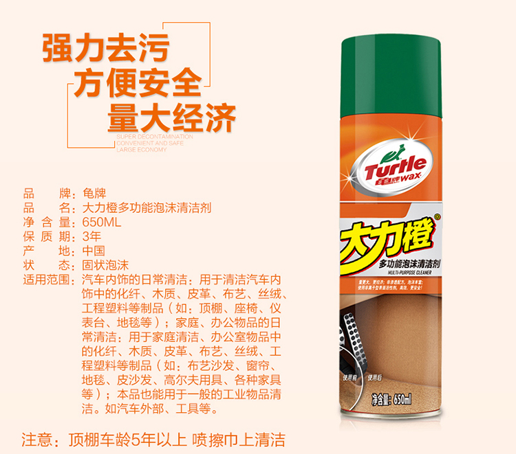 Tortoise Brand Vigorous Orange Multifunction Foam Clean Car Interior Cleaning Agent Ceiling Genuine Leather Seat Car Wash