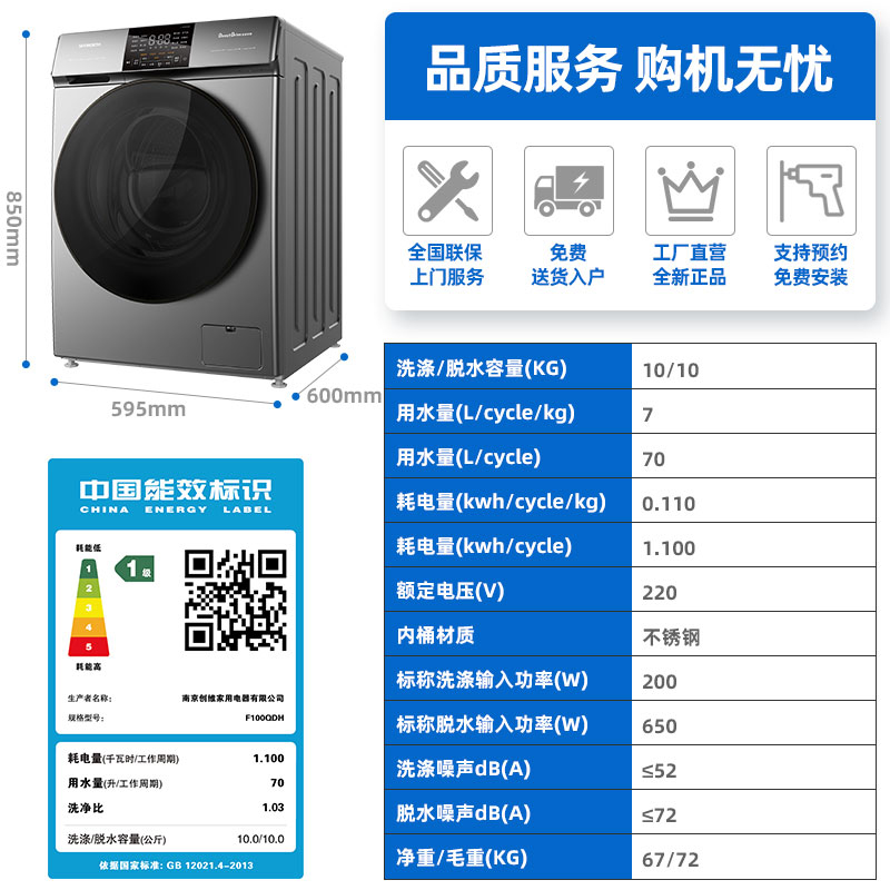 Crewy 10 kg drum washing machine fully automatic home DD frequency conversion direct-drive wash-drying integrated eluting F100QDH