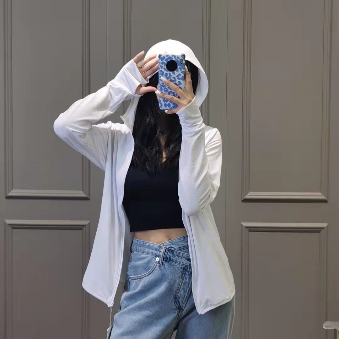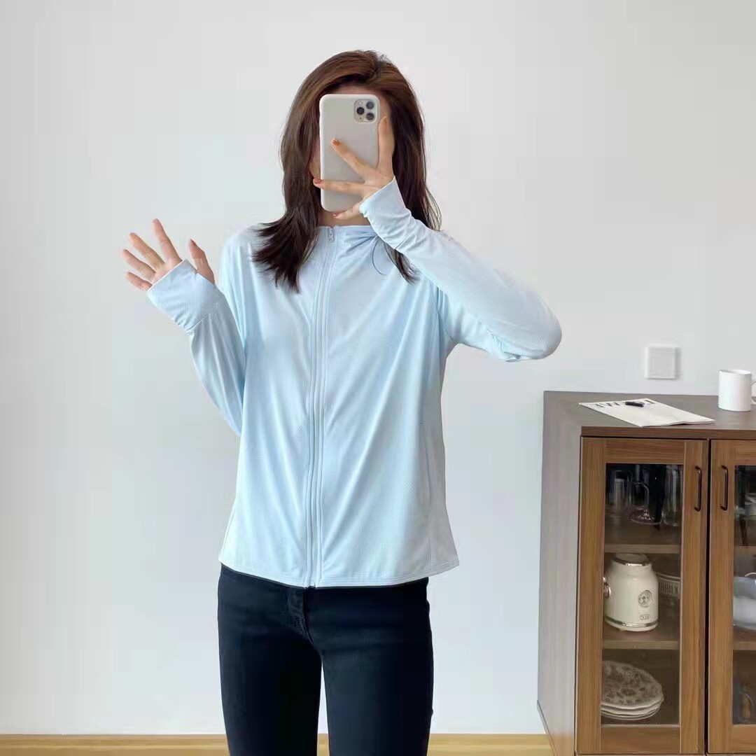 Summer ice silk long sleeve sunscreen outdoor sports UV large hat visor sunscreen jacket with finger buckle mesh yarn breathable