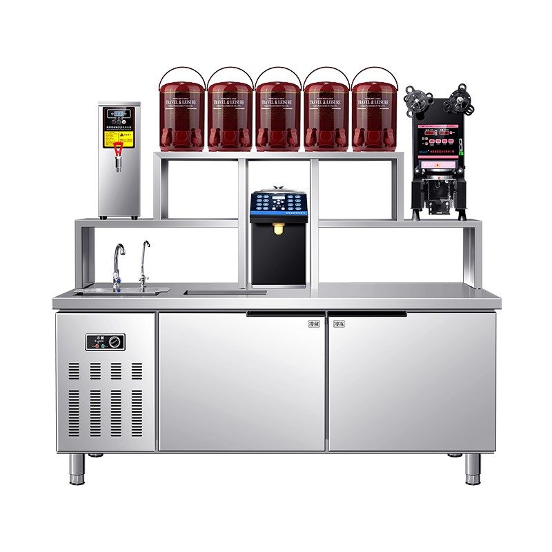 Milk Tea Shop Equipment Full Range Of Water Bar Counter Commercial Refrigerated Freezer Bench Drinks Store Machine Operation Snowk Table