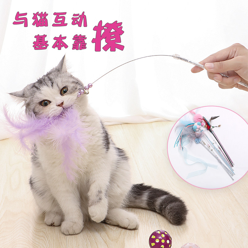 Kitty Toy Steel Wire Rat Teasing Cat With Cat Stick Colorful Feather Bell Catwalk Cat Young Cat Pet Supplies Self hi