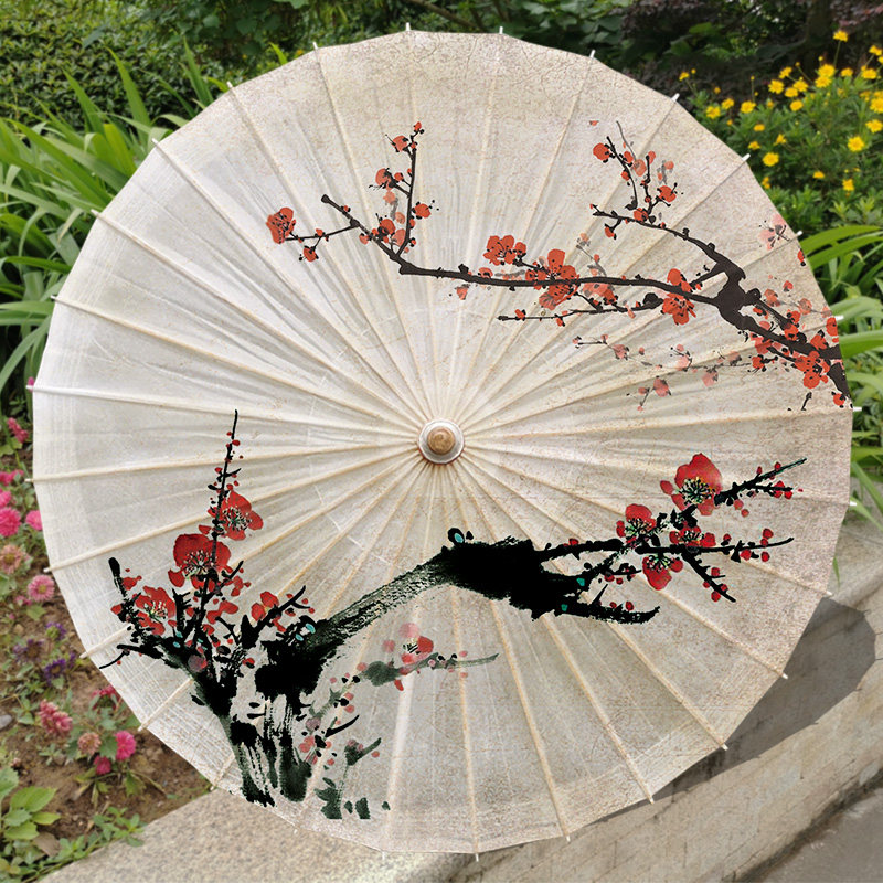 (Plum Blossom) Antique Classical Oil Paper Umbrella Practical Rainproof Sunscreen Retro Handmade Sunshade Traditional Hanfu Photography