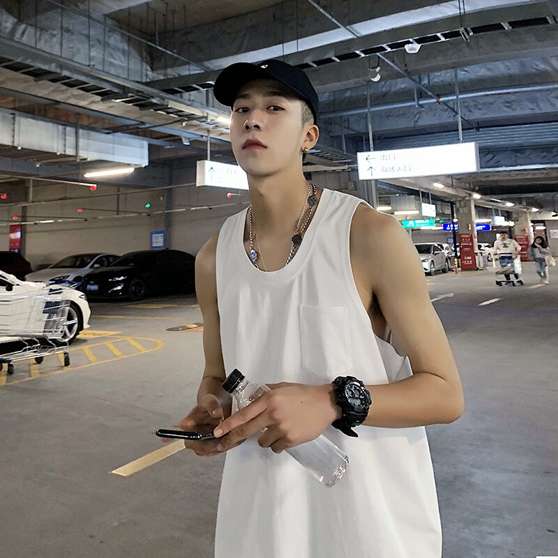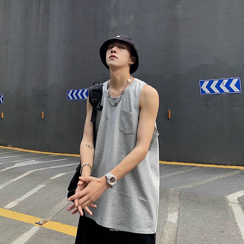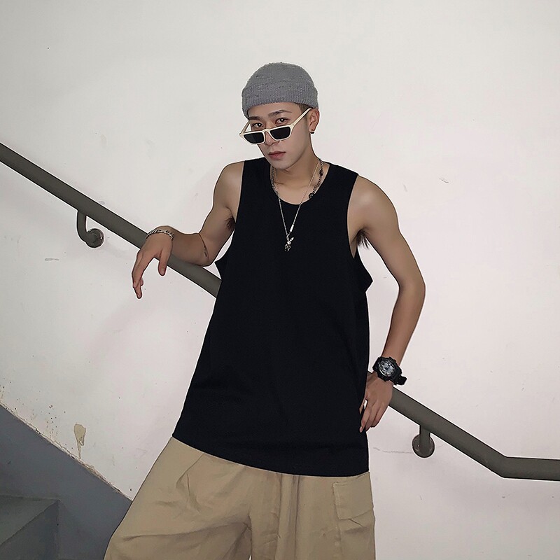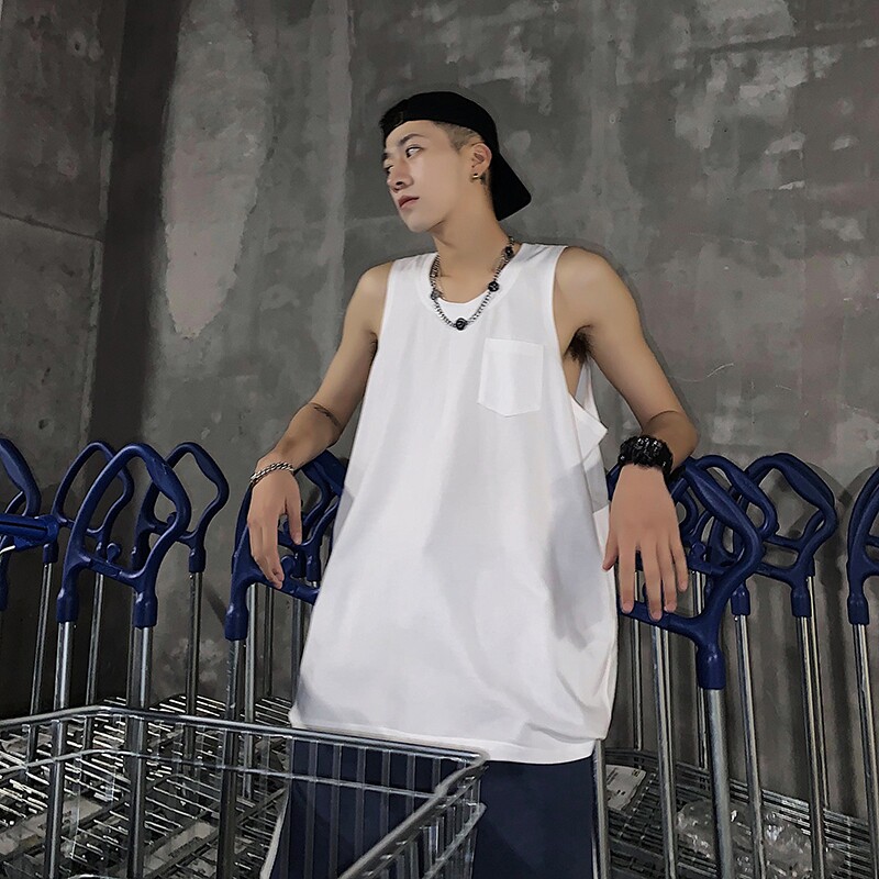 Cross-column vest men tide in summer wearing sleeveless t-shirt trend personality loose basketball fitness cann shoulder