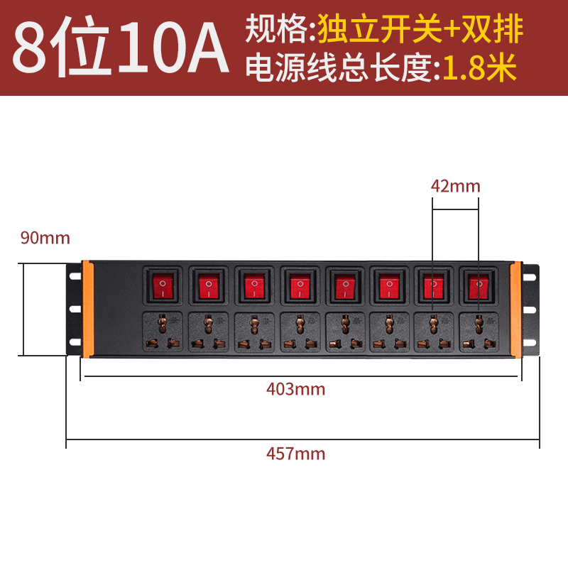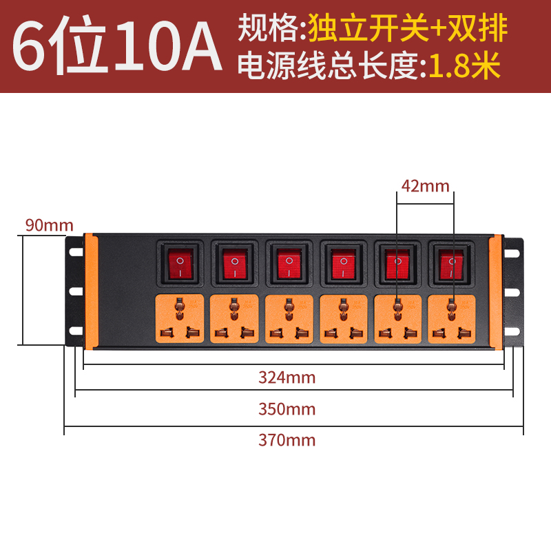 PDU cabinet socket 6-digit 10A independent switch fish tank row plug 8-position high power factory plug-in board terminal block