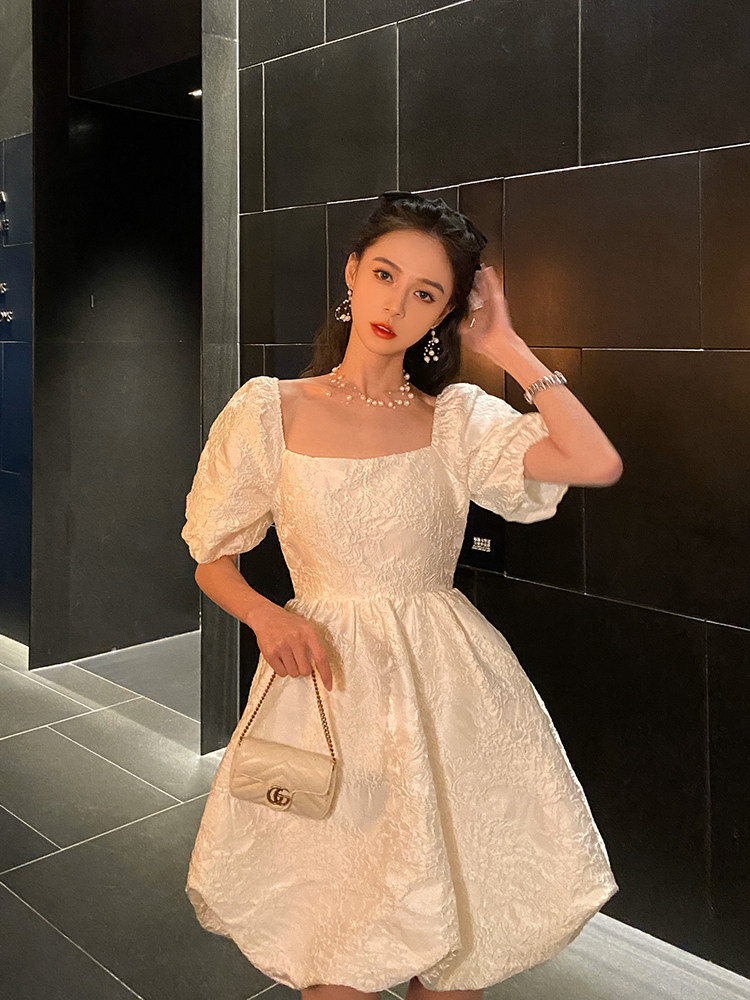 Juicecola (50% off special clearance) French niche white dress women's puff sleeves drawstring backless