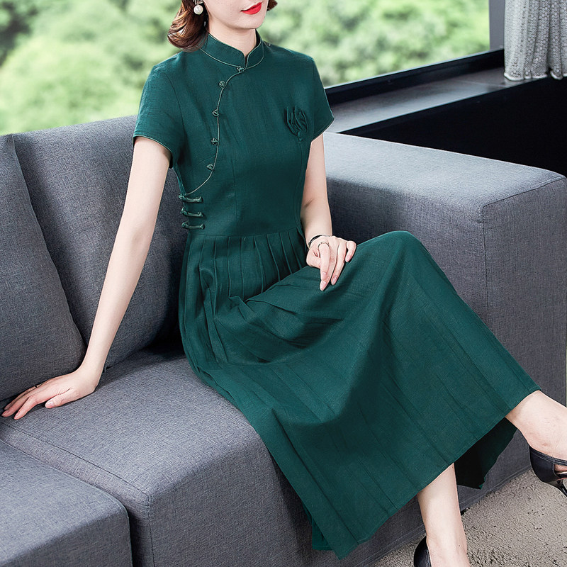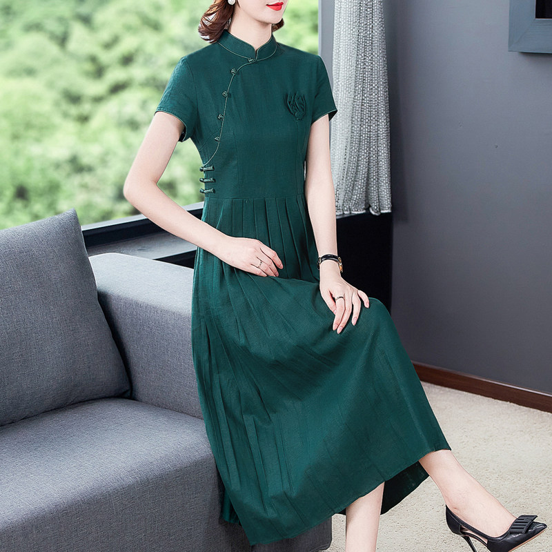 35-year-old new middle aged woman's summer mother dress summer dress 40-year-old women's dress improvement qipao