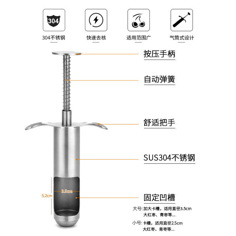 Shanghe 304 stainless steel jujube corer corer household digging and cutting jujube core artifact red jujube shell Hu jujube tool