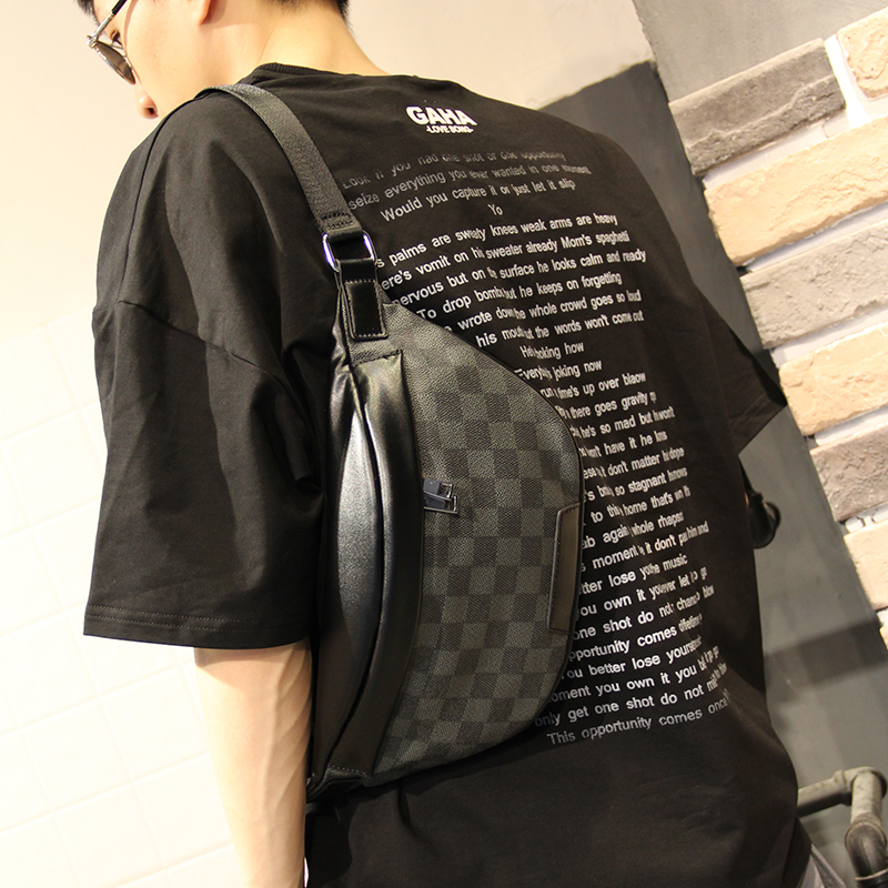 New leather dumpling chest bag European and American tide brand multi-functional universal riding plaid messenger bag street fashion waist bag
