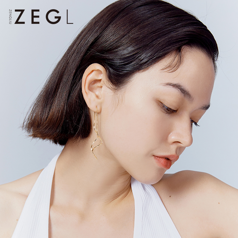 ZENGLIU925 Silver Wave Ear Line Women 2021 New Tide Temperament Long Tassel Earrings