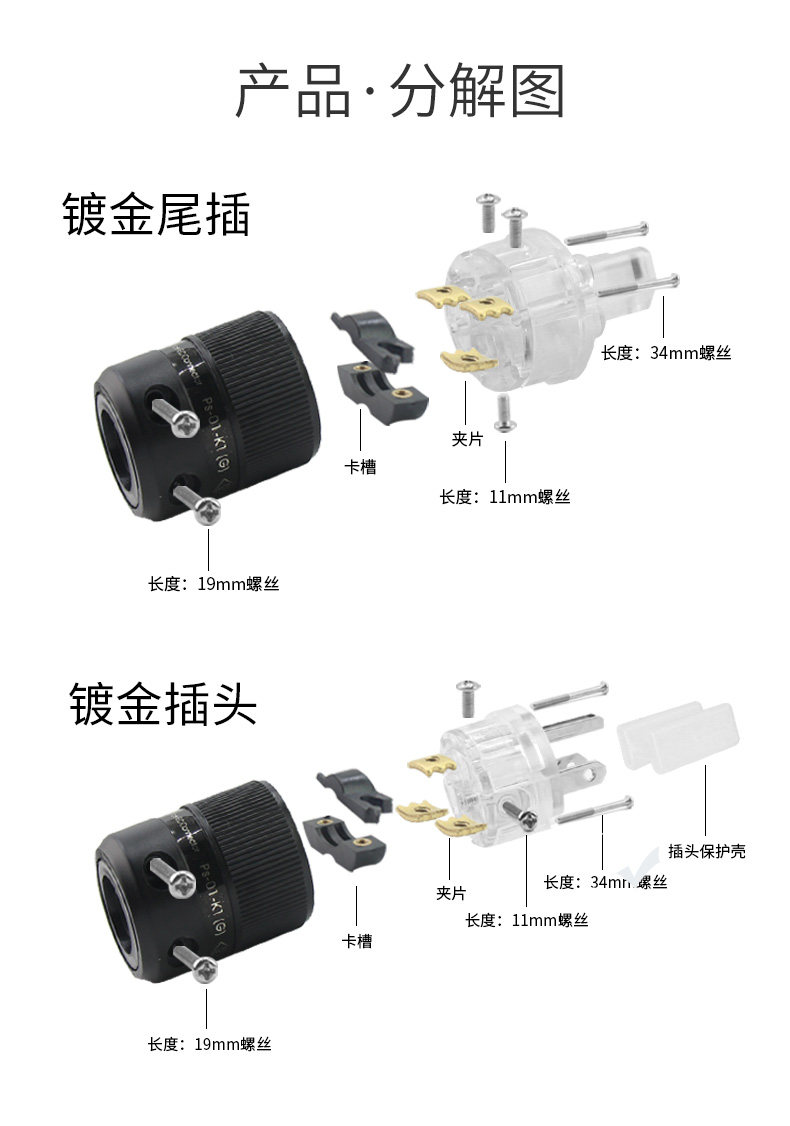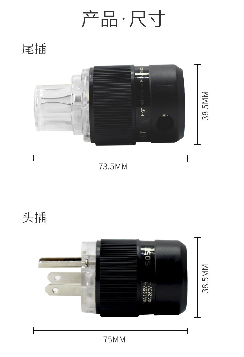 Sound strings frozen plated American power plug plug tail fever audio power cord head and tail