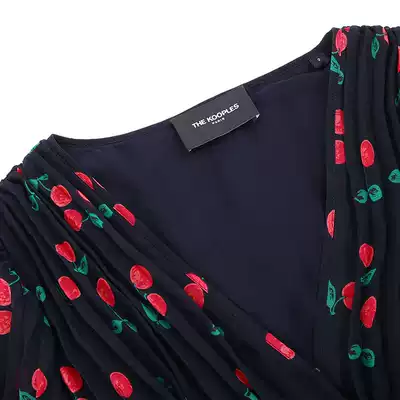 the kooples Spring/Summer New Ladies vneck cherry print pleated dress high waisted chiffon skirt