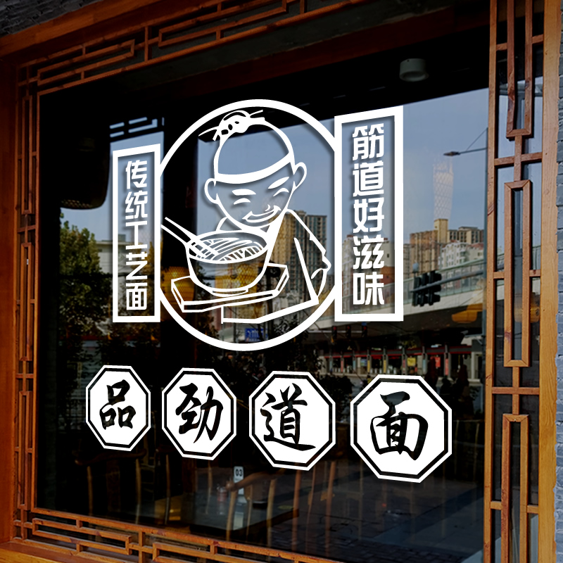 Startups Noodle Restaurant Hotel Wall Stickers Beef Lanoodle Knife Cut Face Chongqing Small Face Glass Shop Window Arrangement Decoration Applid