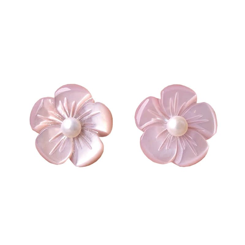 Original 925 sterling silver flower temperament simple and small earrings fresh and sweet pink super fairy gentle earrings for women