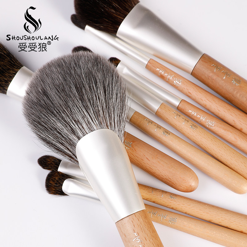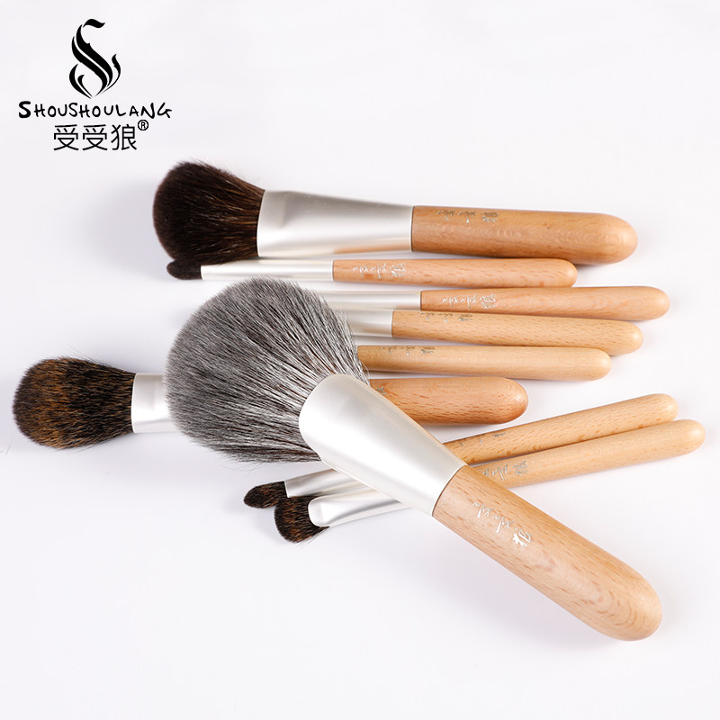 Shoushou wolf 19# light birch 9 makeup brush set squirrel hair squirrel hair loose powder brush blush brush eye shadow brush set brush